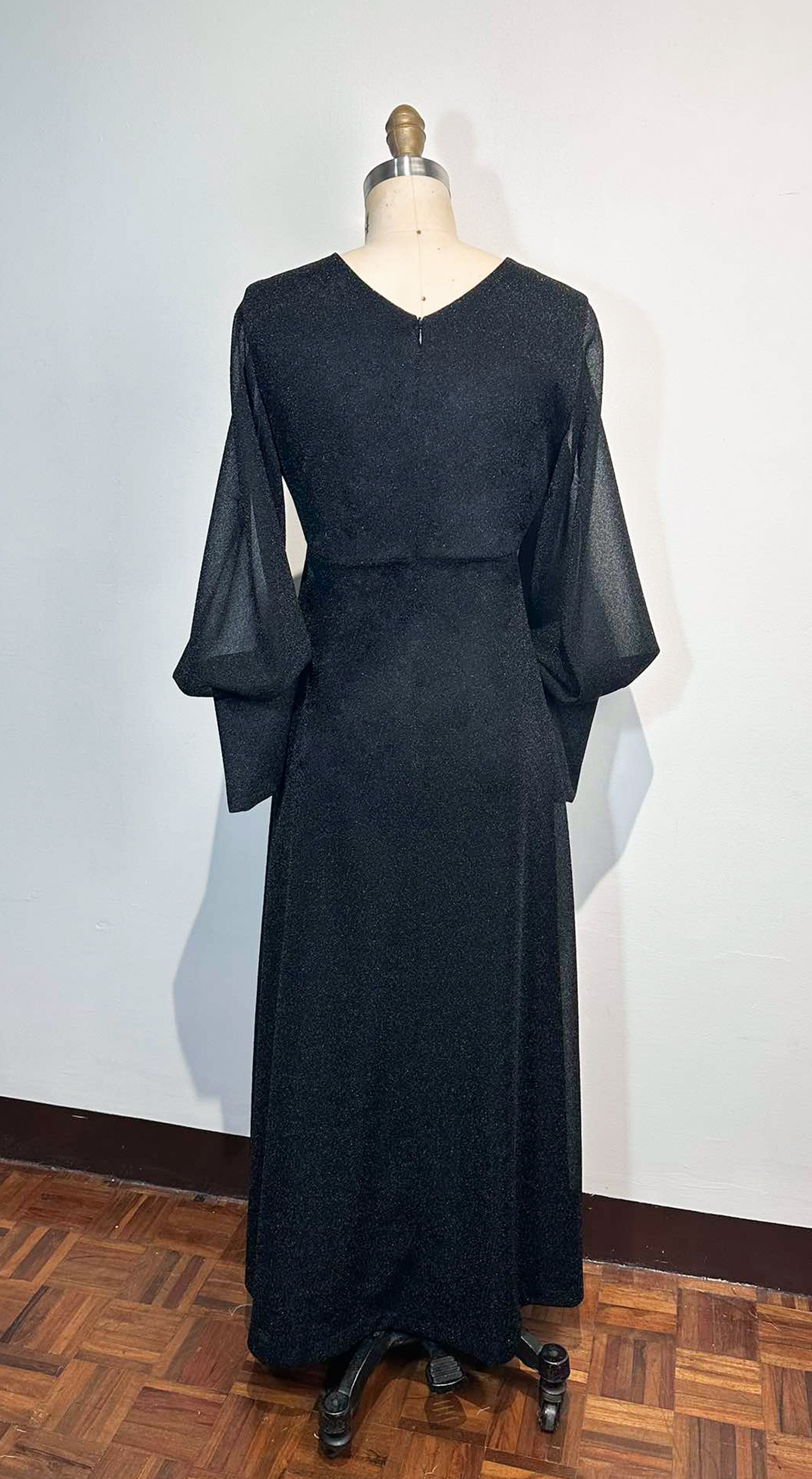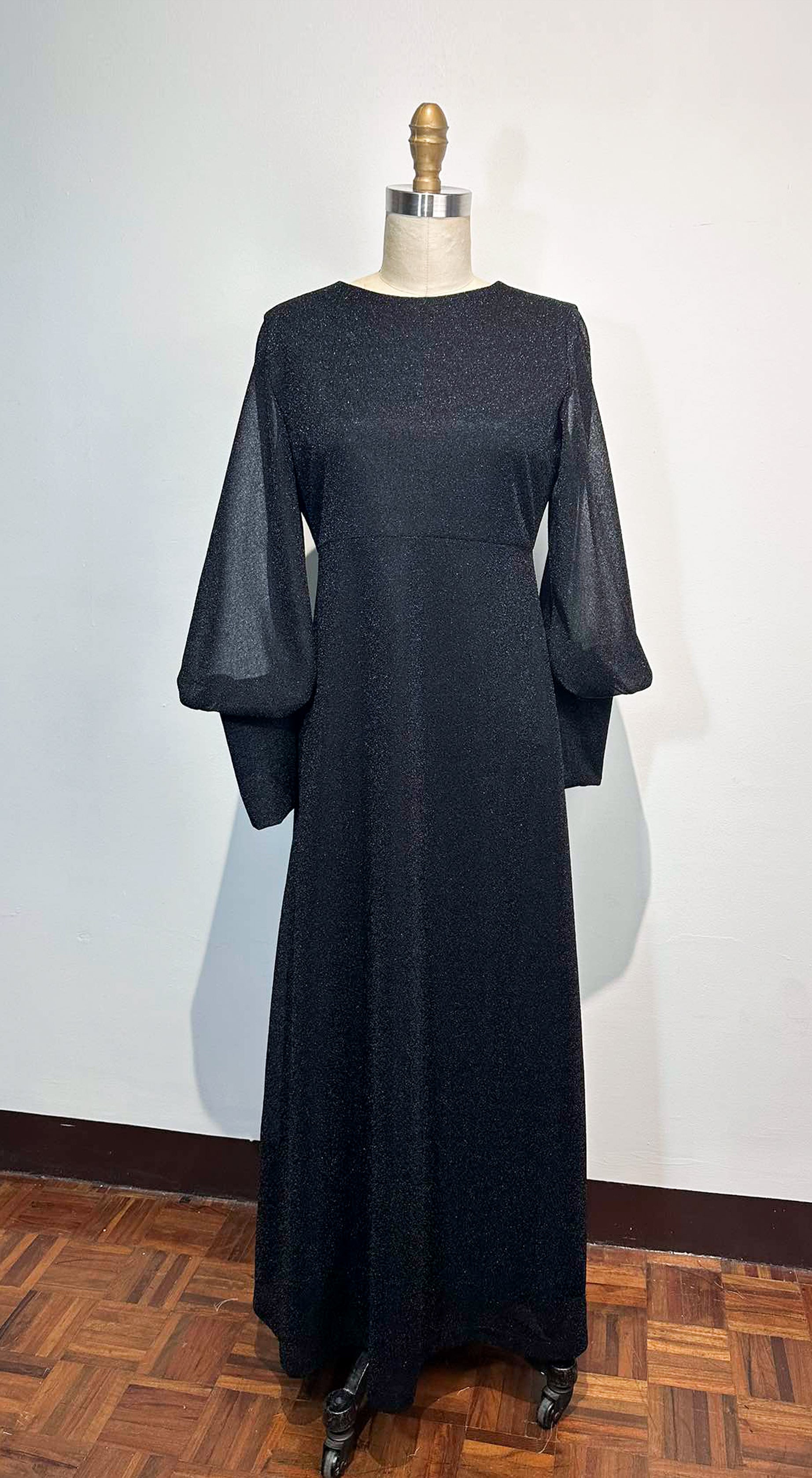 A-Line Skirt Dress Bell Sleeves with OS Cuffs in Black Shimmery Fabric