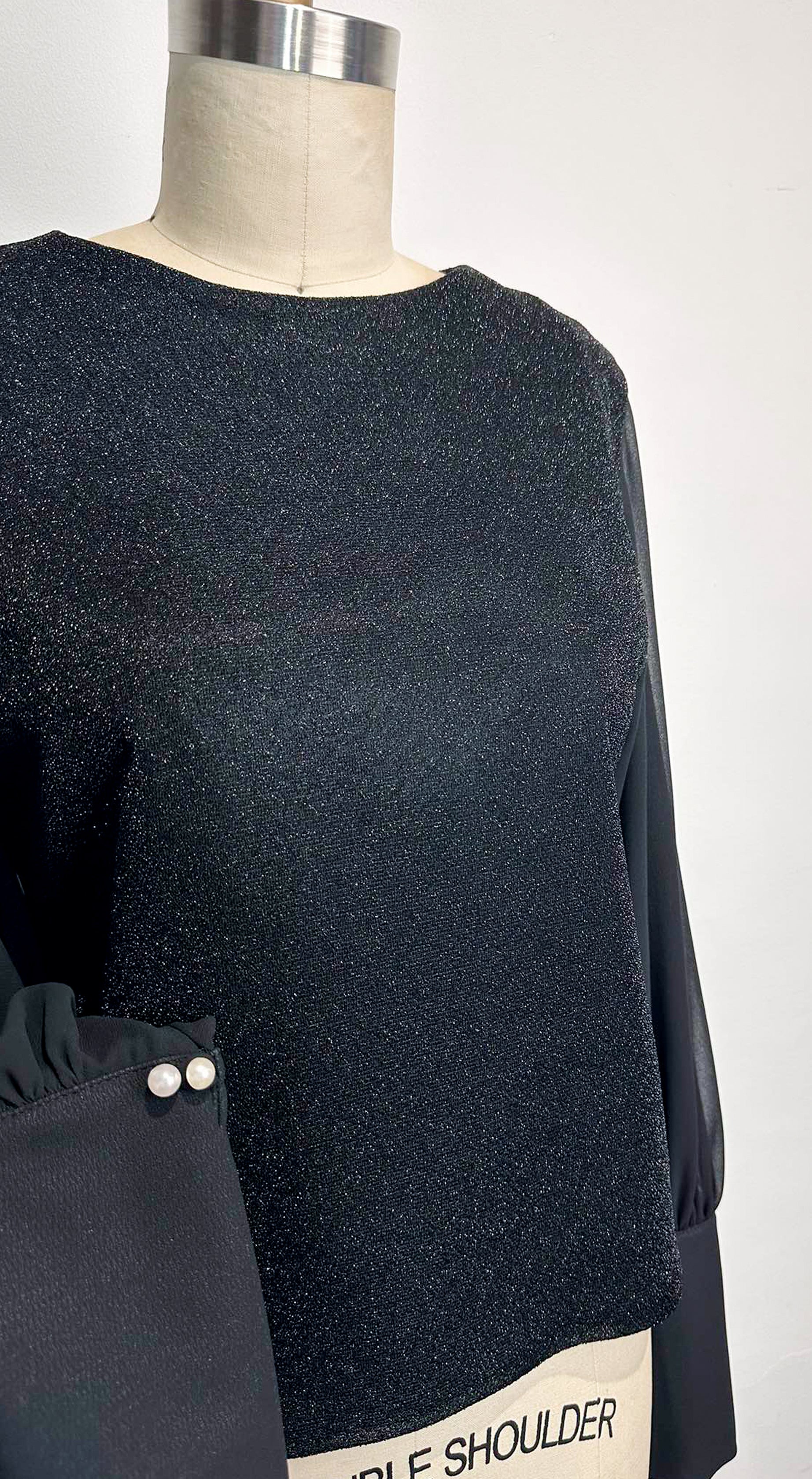 Bell Sleeve Chiffon Shimmery Black Top