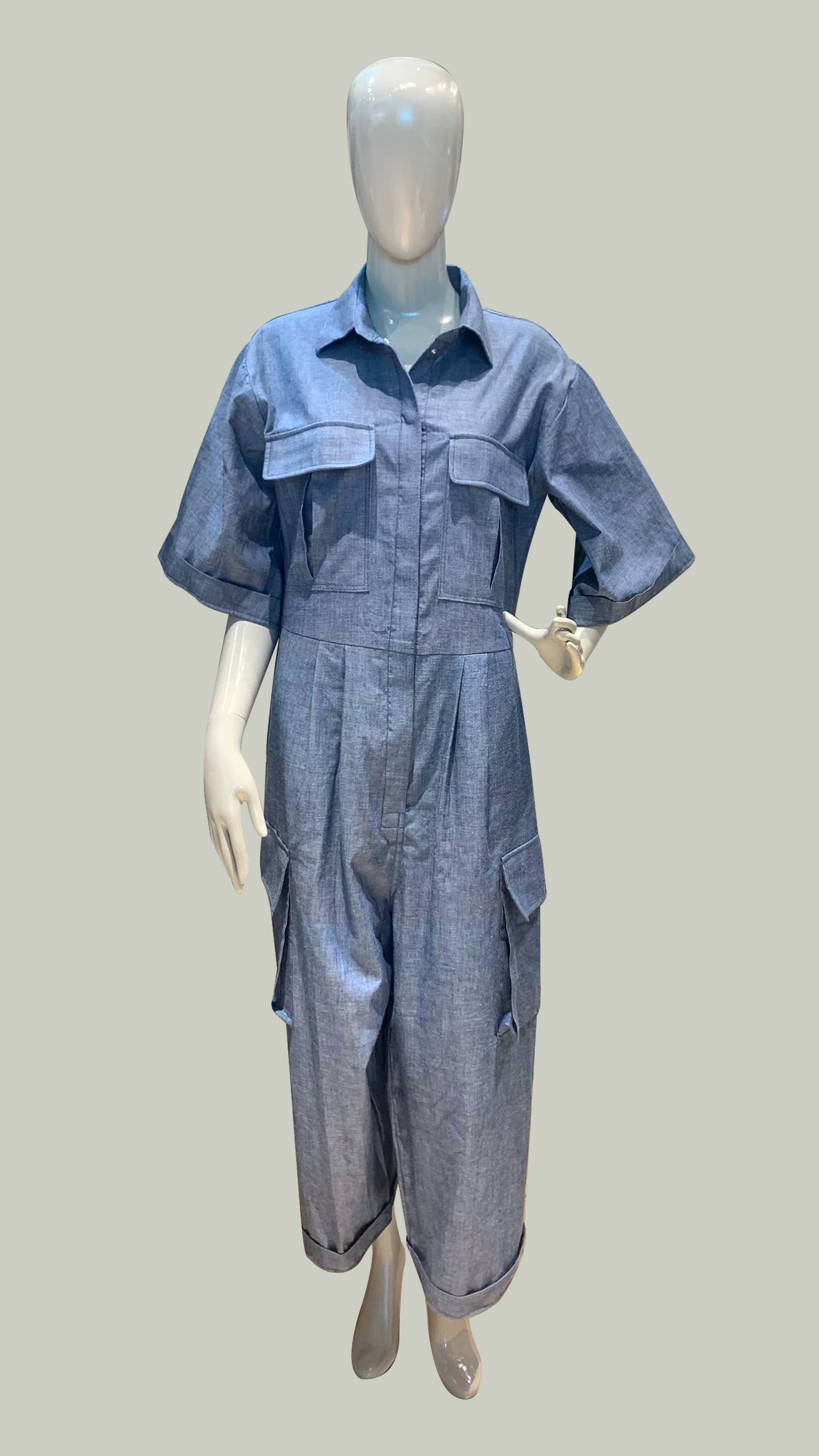 Bell Sleeve Crop Jumpsuit — Blue Soft Denim