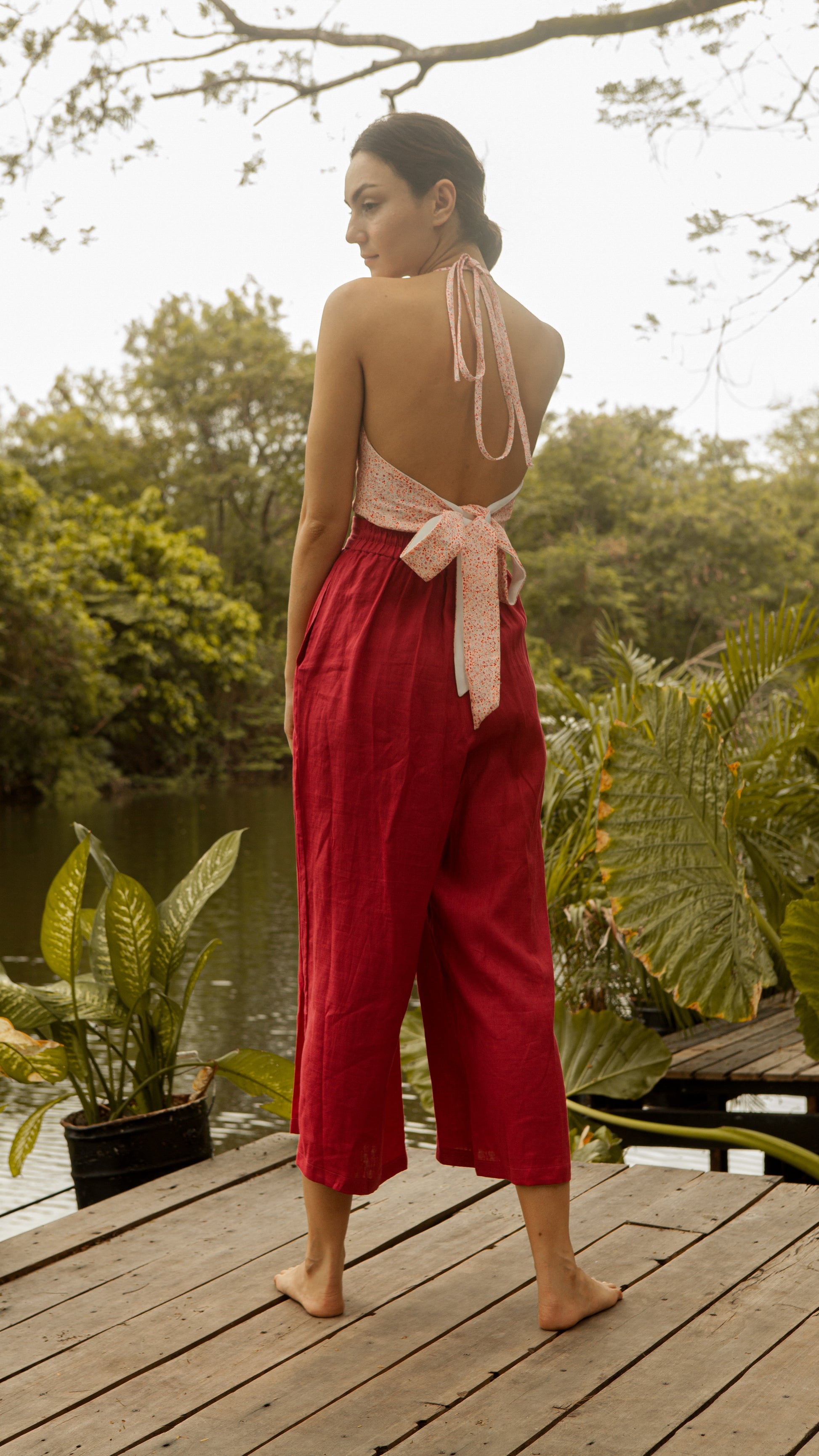 This Bra Top is a perfect addition to your wardrobe. It is adjustable with a tie back closure. Worn as an inner top or on its own. Part of our blue stripe summer collection.