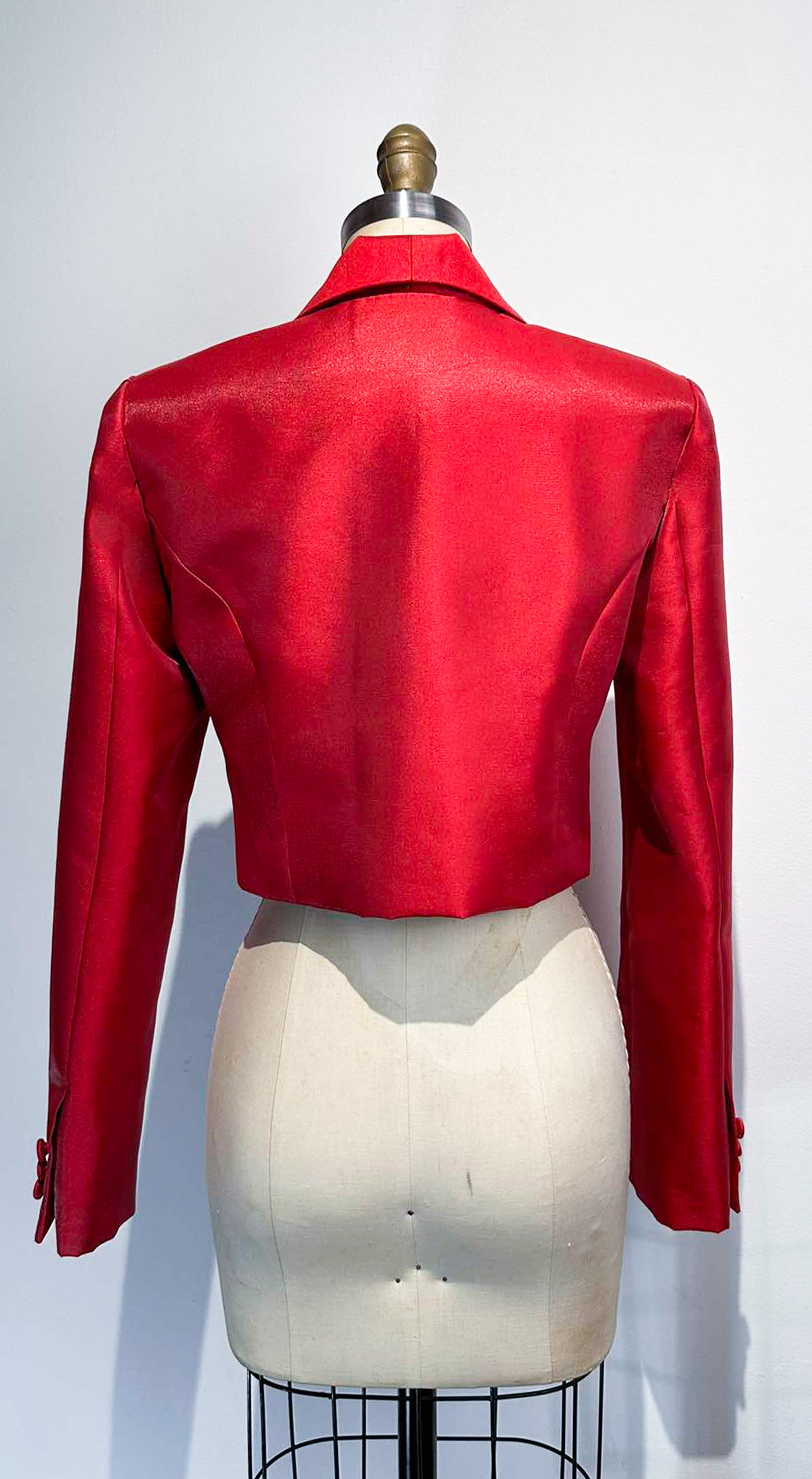 Crop Round Collar Blazer - Red Rose