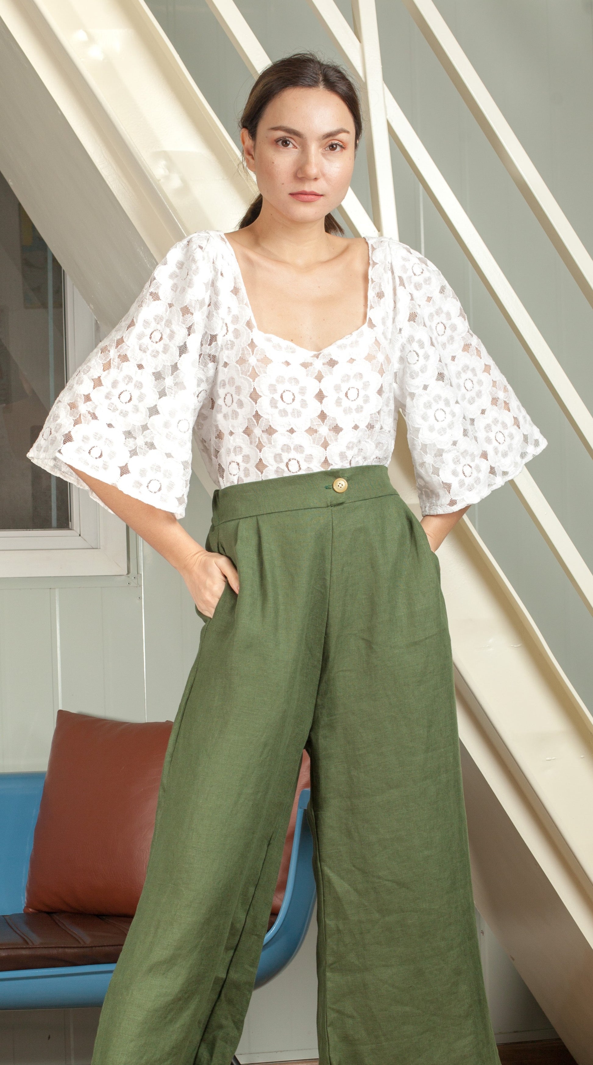 The ‘Tie-Back Crop Top’ is effortlessly opulent with its semi-sweetheart neckline. An oversized top with tie-back detail crafted from a lightweight fabrication featuring a pleated bell sleeve. Designed with versatility, pair with denim shorts or pants and white sneakers for the everyday look or our long skirt and flats or neutral heels for a dressed up look.