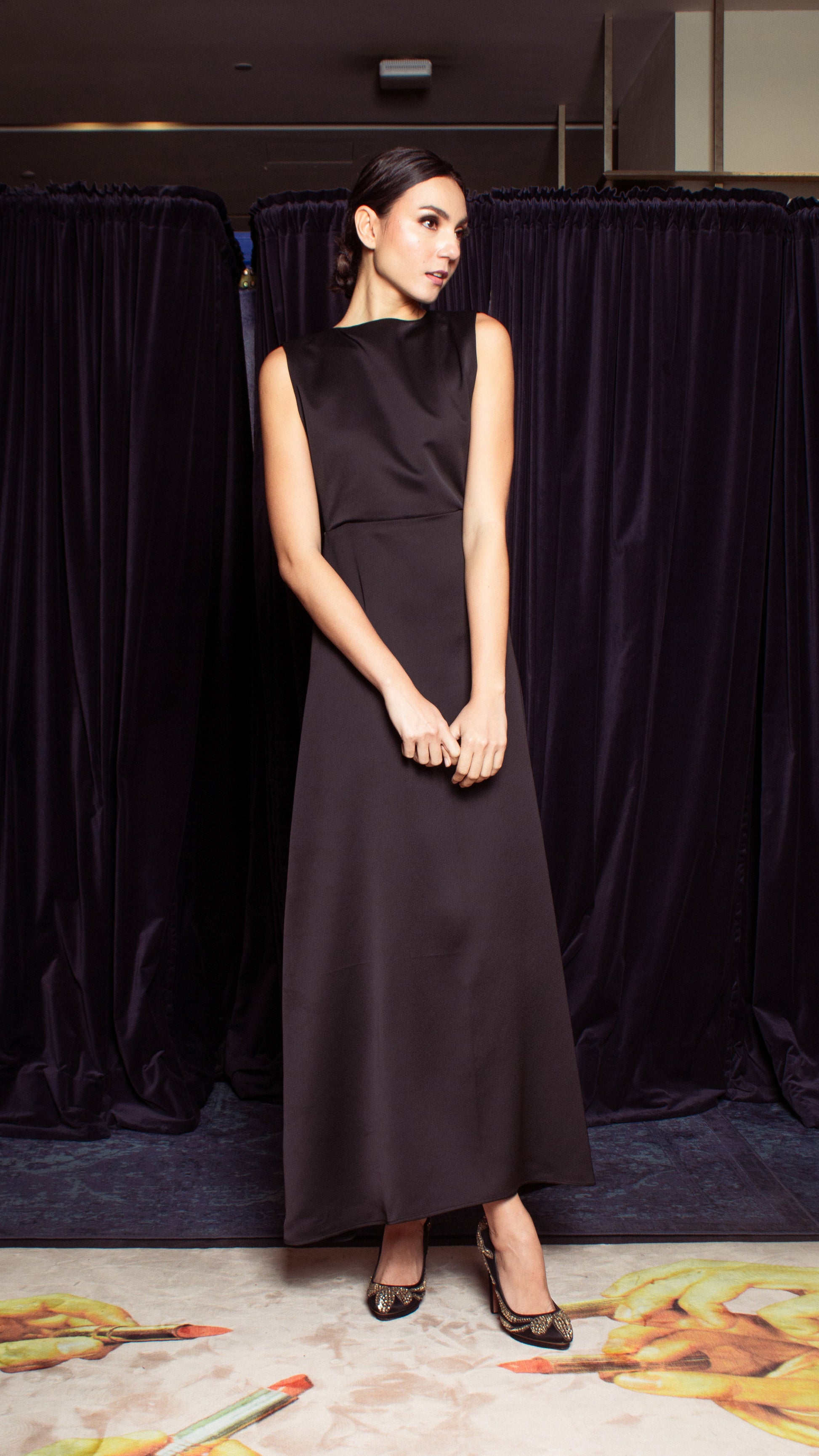 THIRD LOOK: Wear the dress with your very own leather belt, thin, medium and even wide belts would be great to elevate this simple chic long dress.