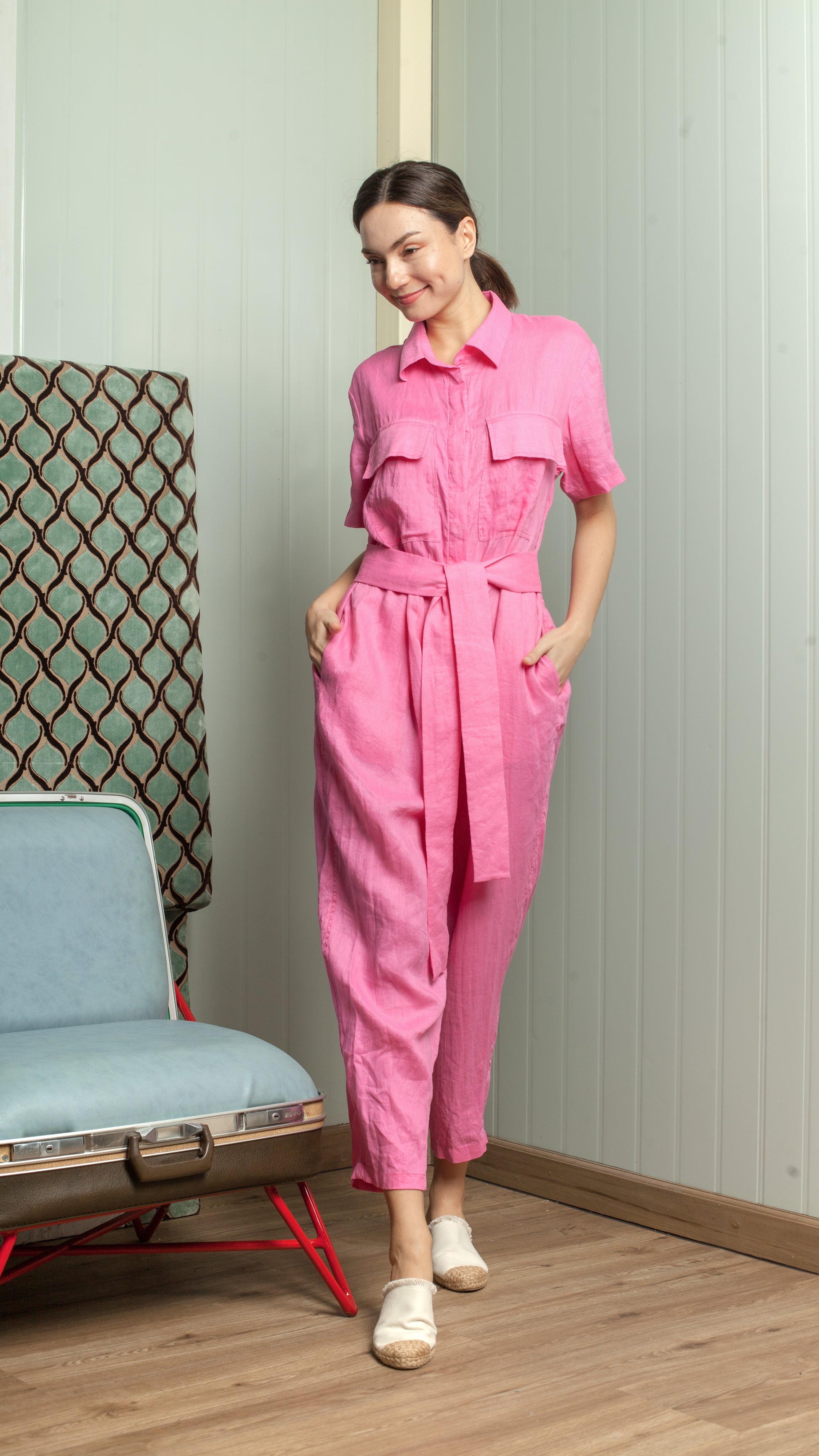 Big Button Hidden Front Closure, Oversized Fit, Short Sleeve, Baggy Bottom Fit