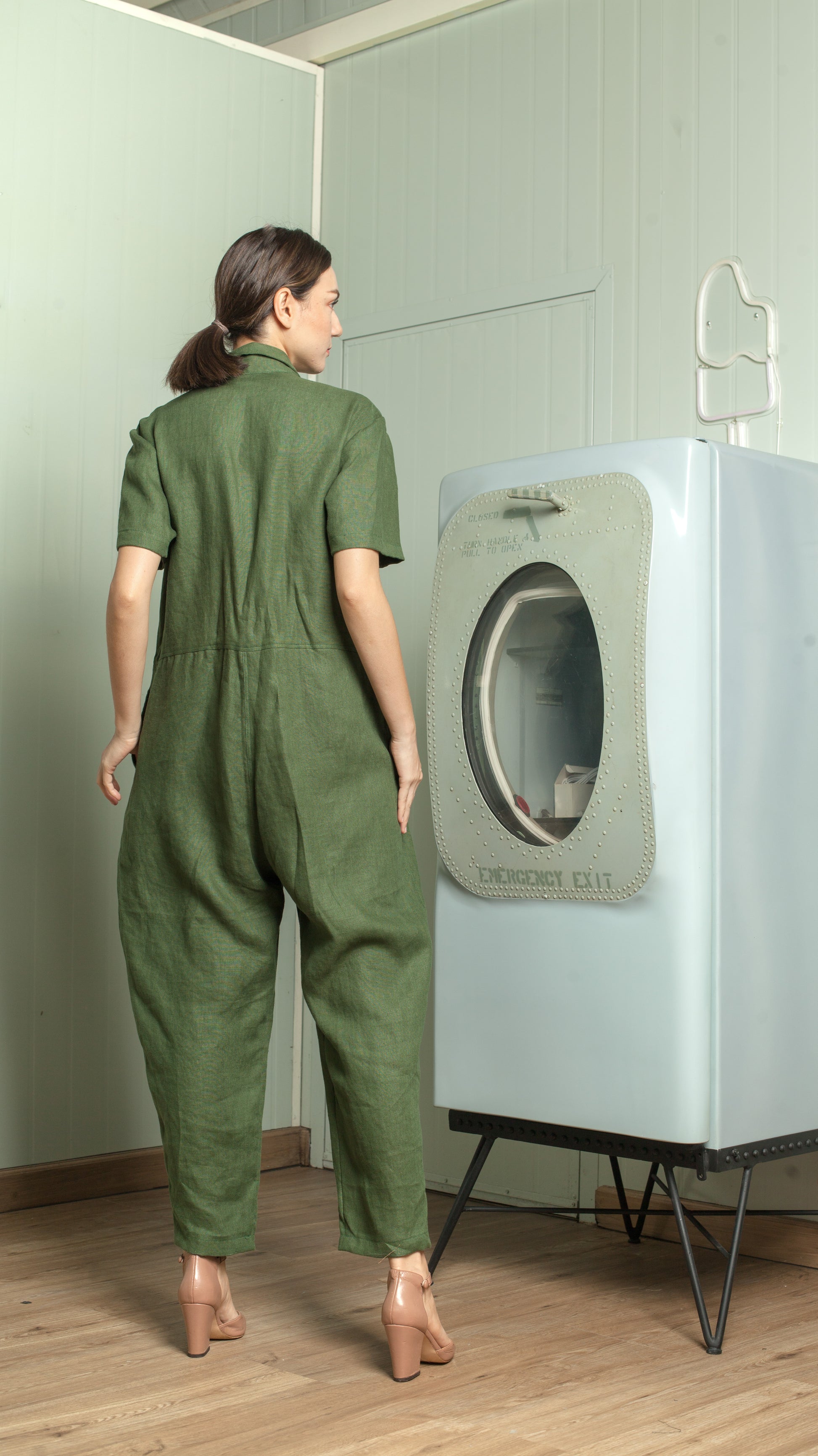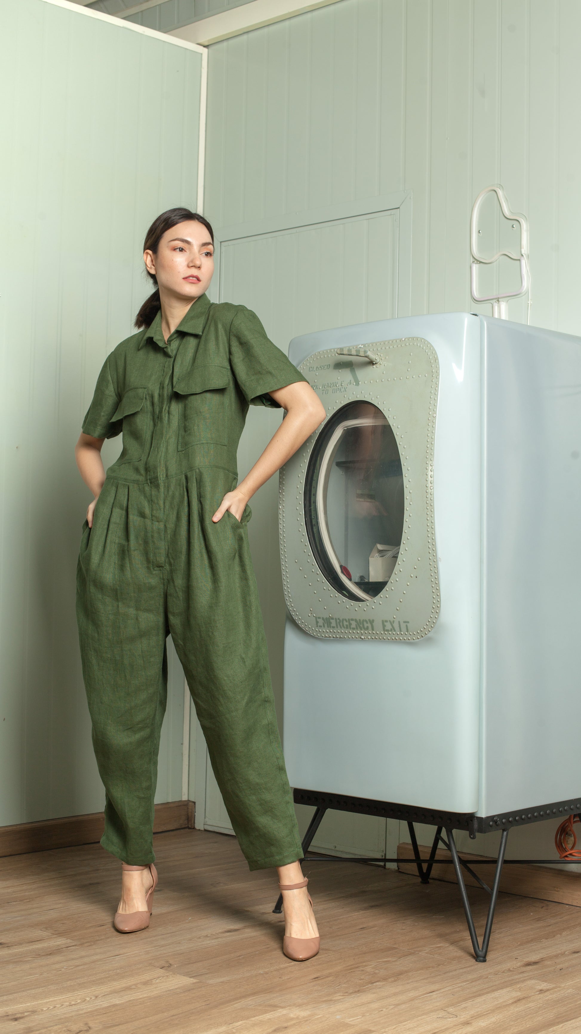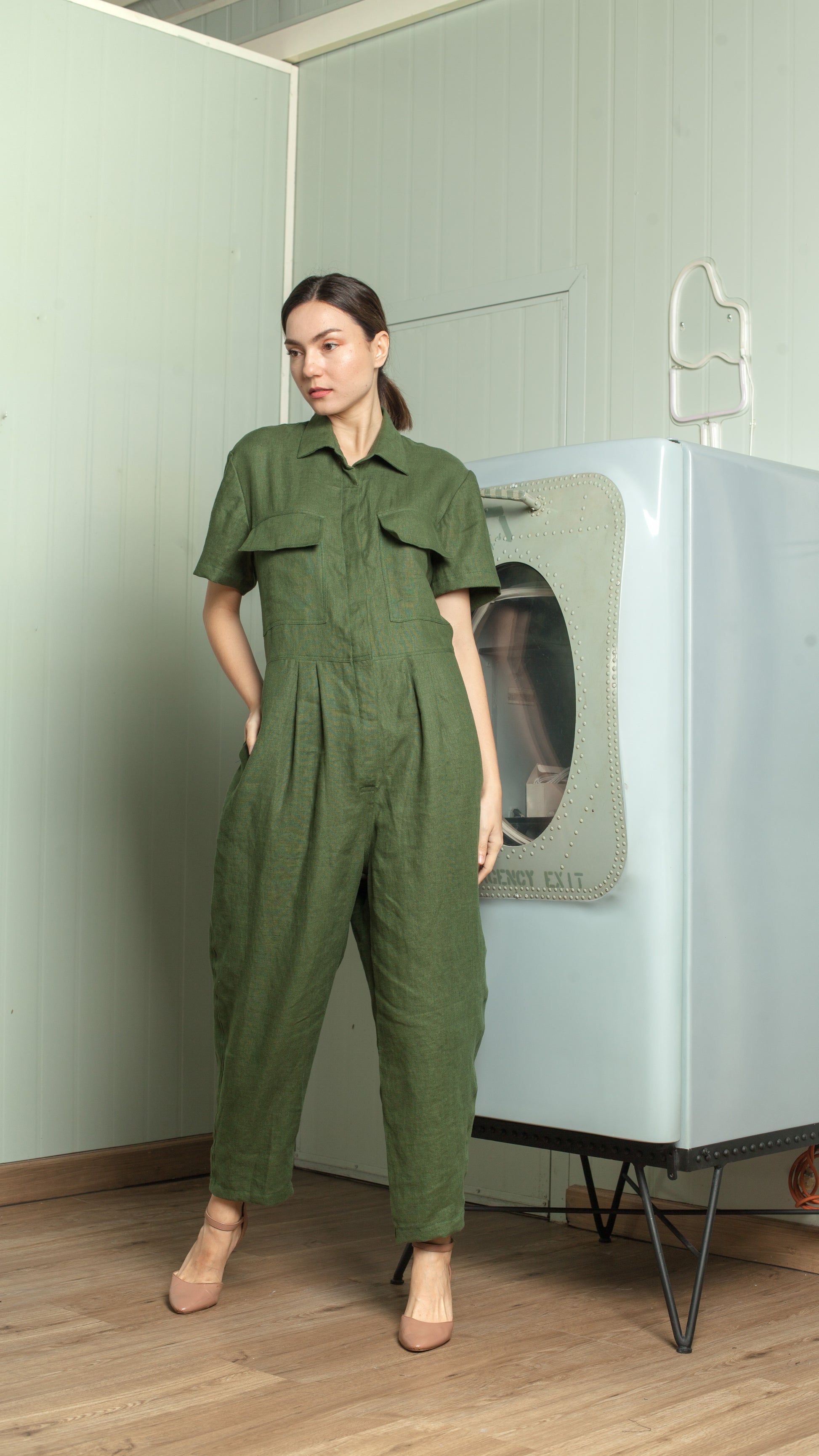 Oversized Short Sleeve Baggy Jumpsuit — Army Green
