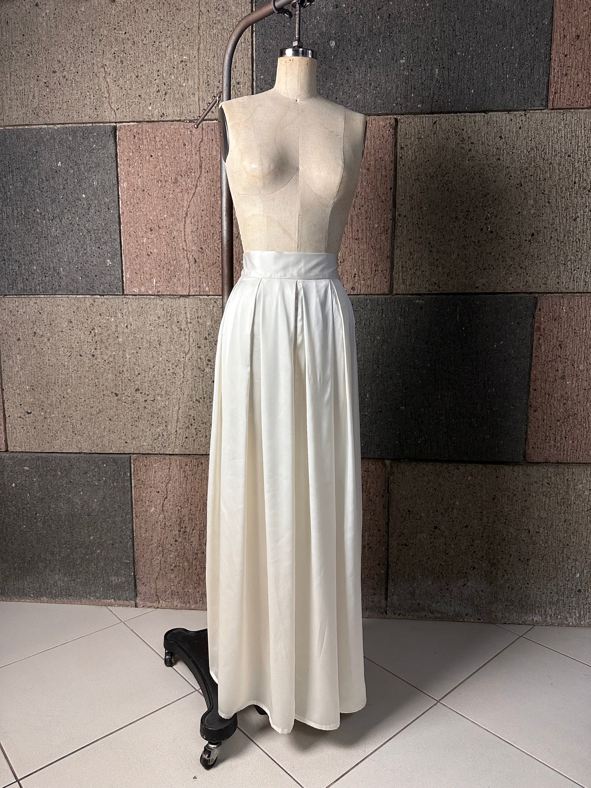 Pleated Blocks Wide Leg Pants in Cream Silk