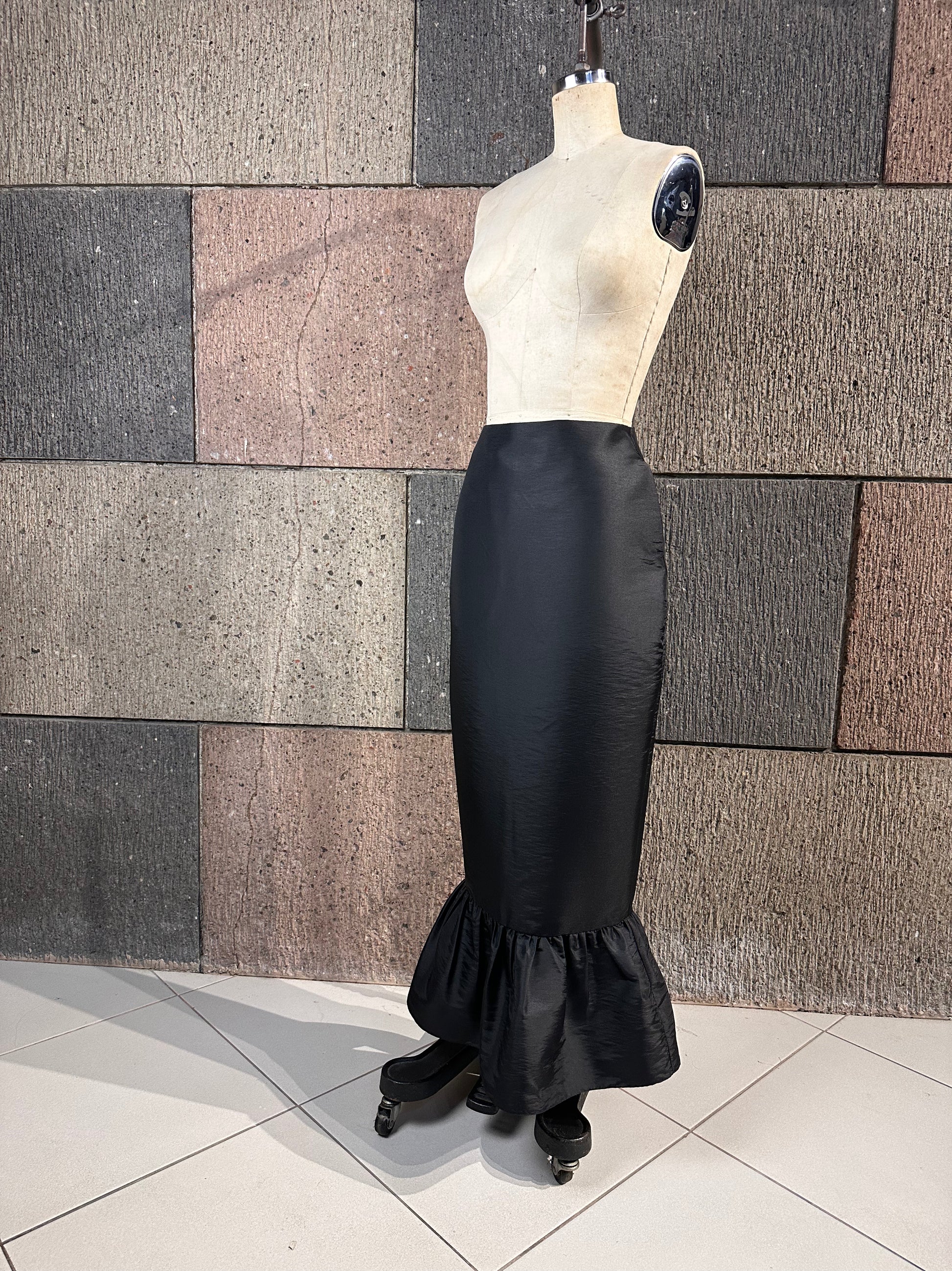 Ruffle Hem Pencil Skirt in Black Taffeta