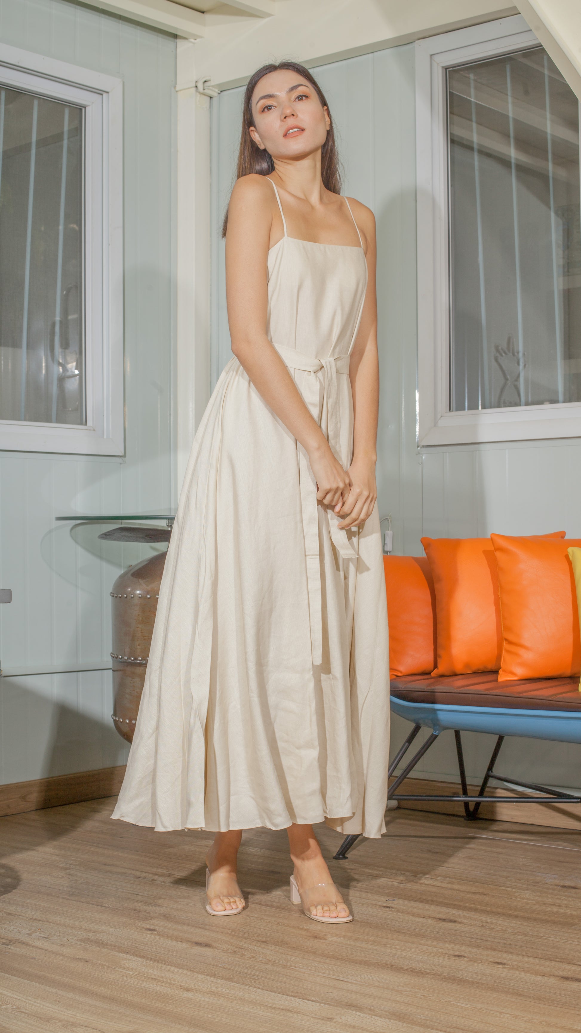 Spaghetti strap, teardrop armhole, square neckline, voluminous skirt, back zip closure