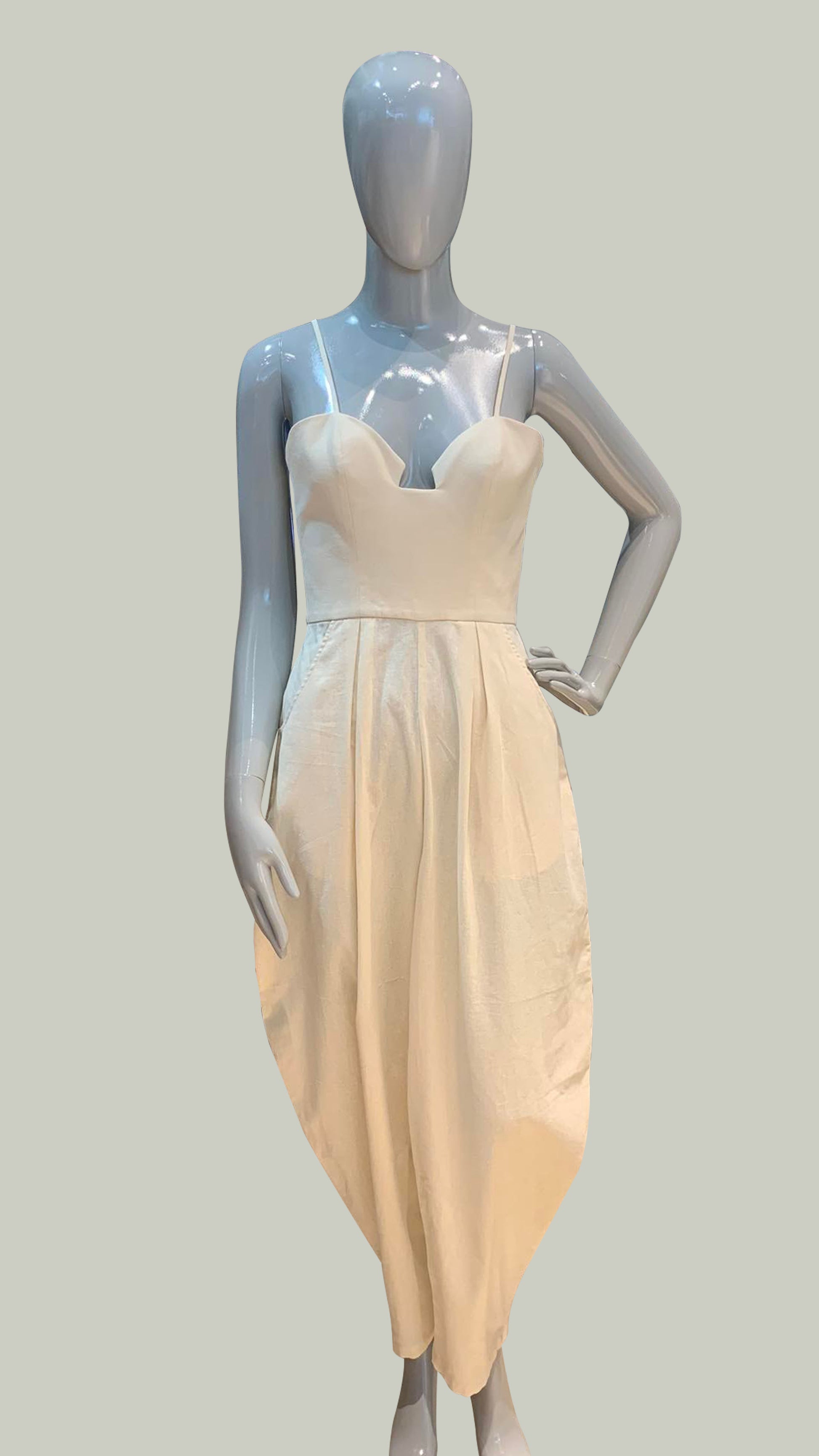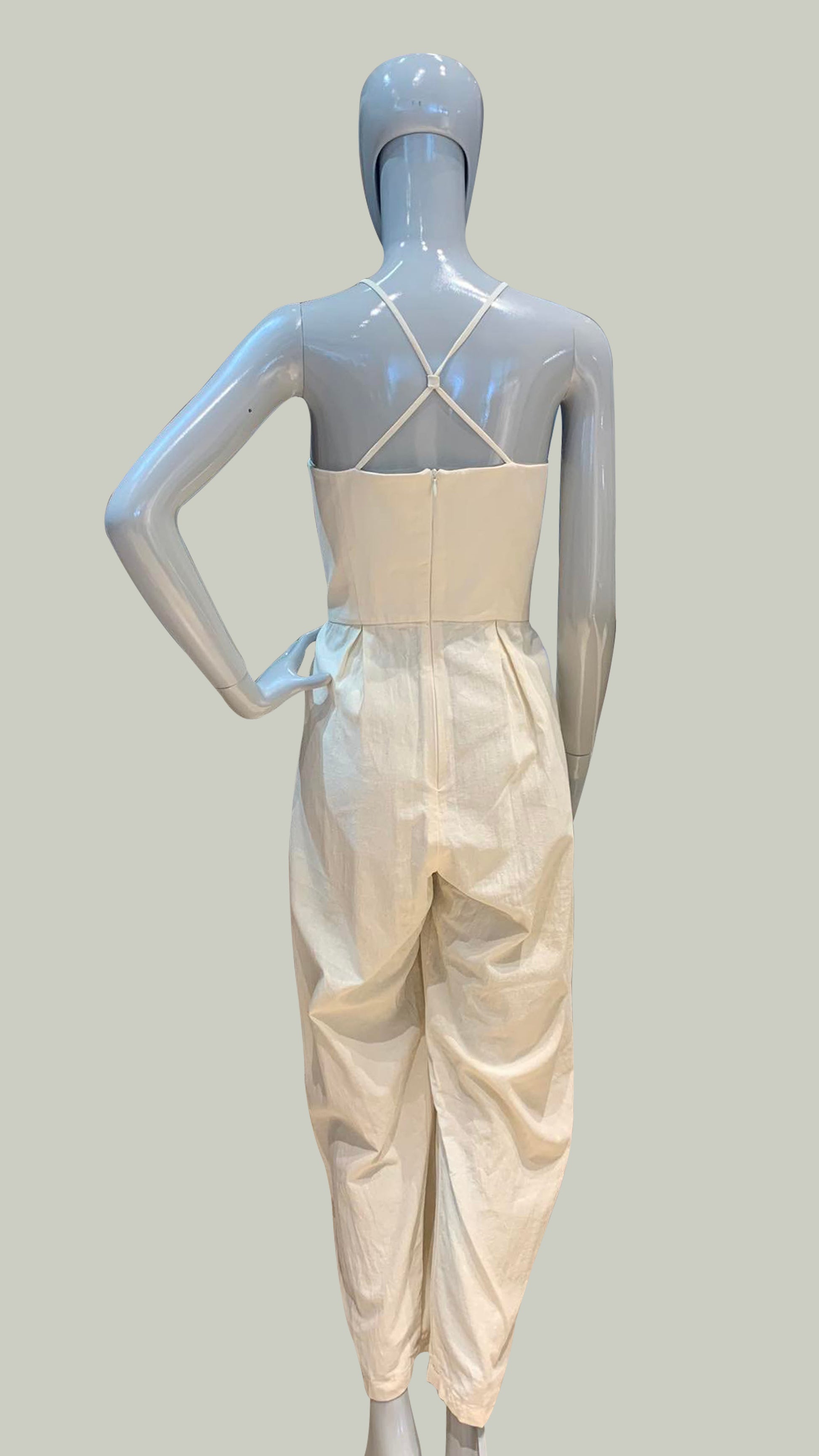Sweetheart Baggy Jumpsuit with Criss Cross Back Strap - Cream