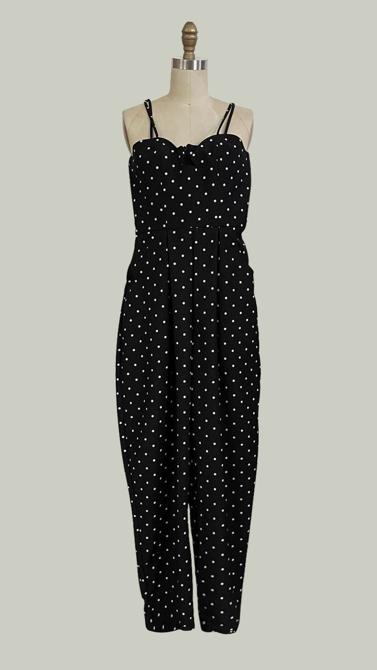 Sweetheart V-Cutout Baggy Jumpsuit — Polka Silk Black