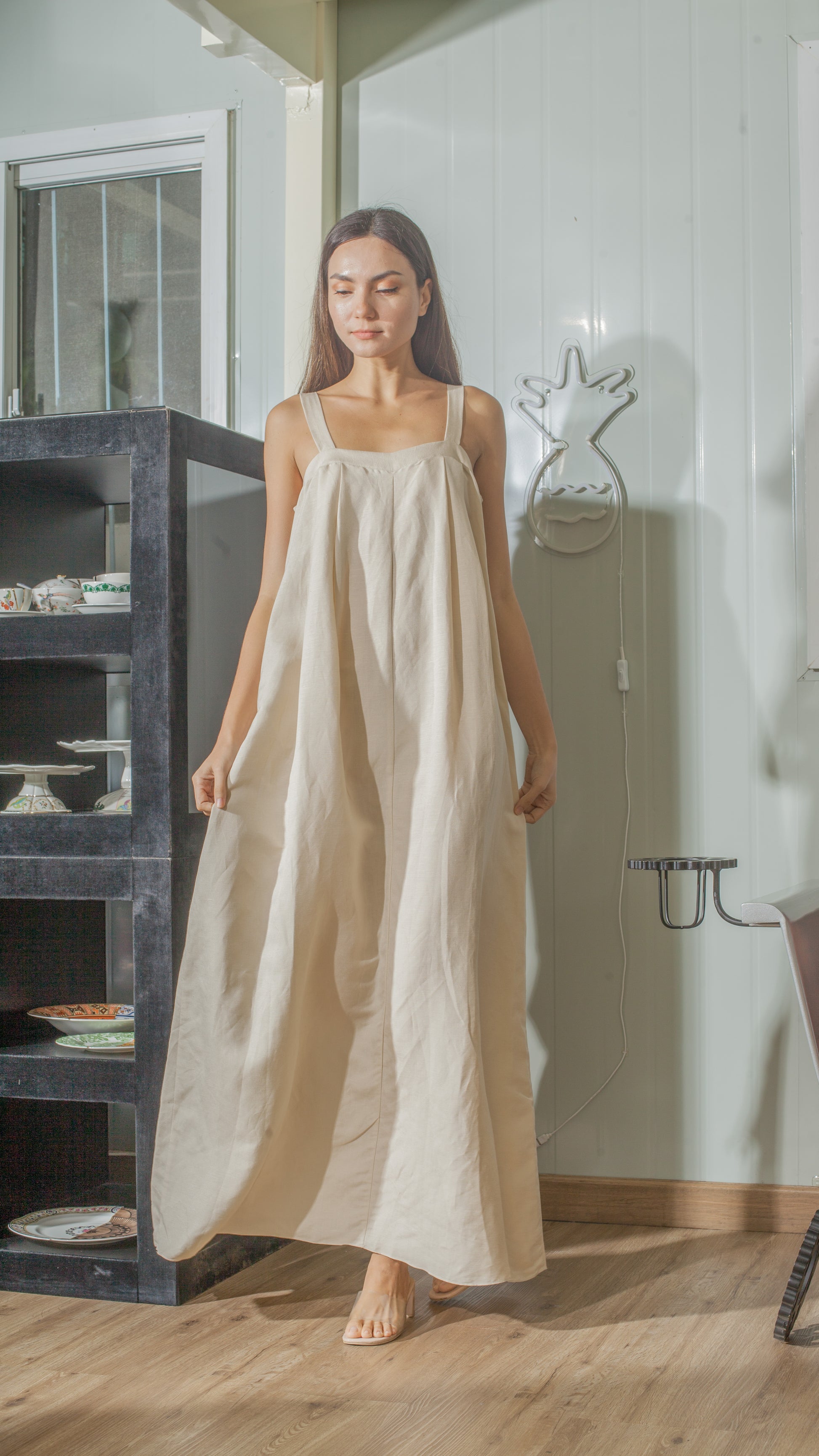 Available in 6 Colors and in 2 Fabrics: Beige and White Linen | Nude, Light Yellow, Plant and Green Lightweight Cotton Weave Fabric