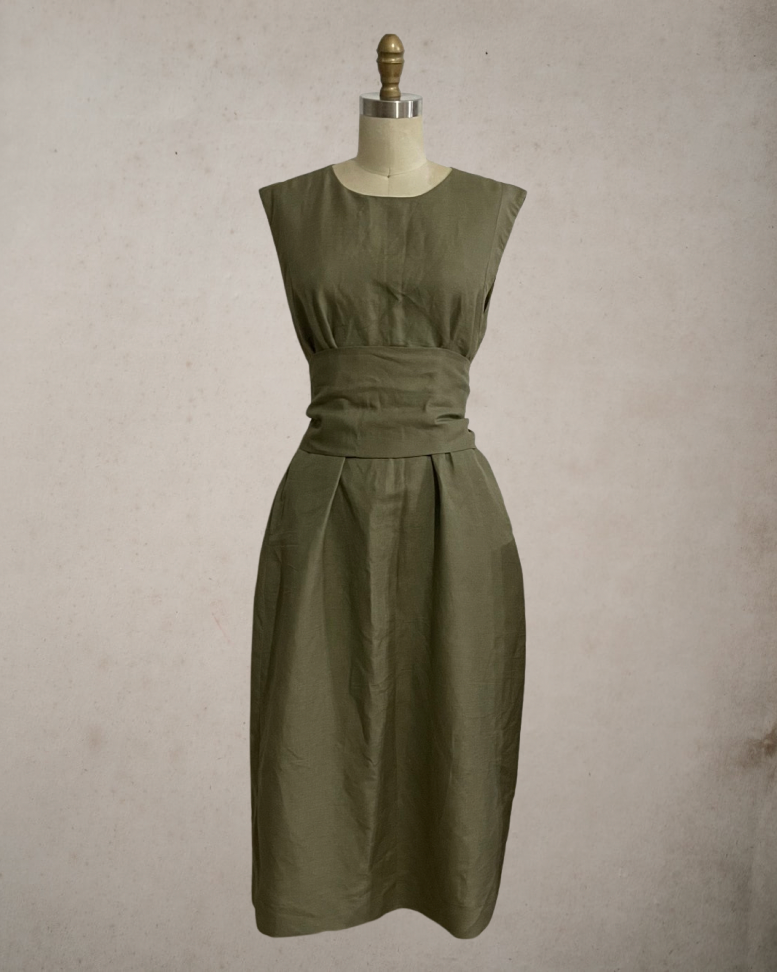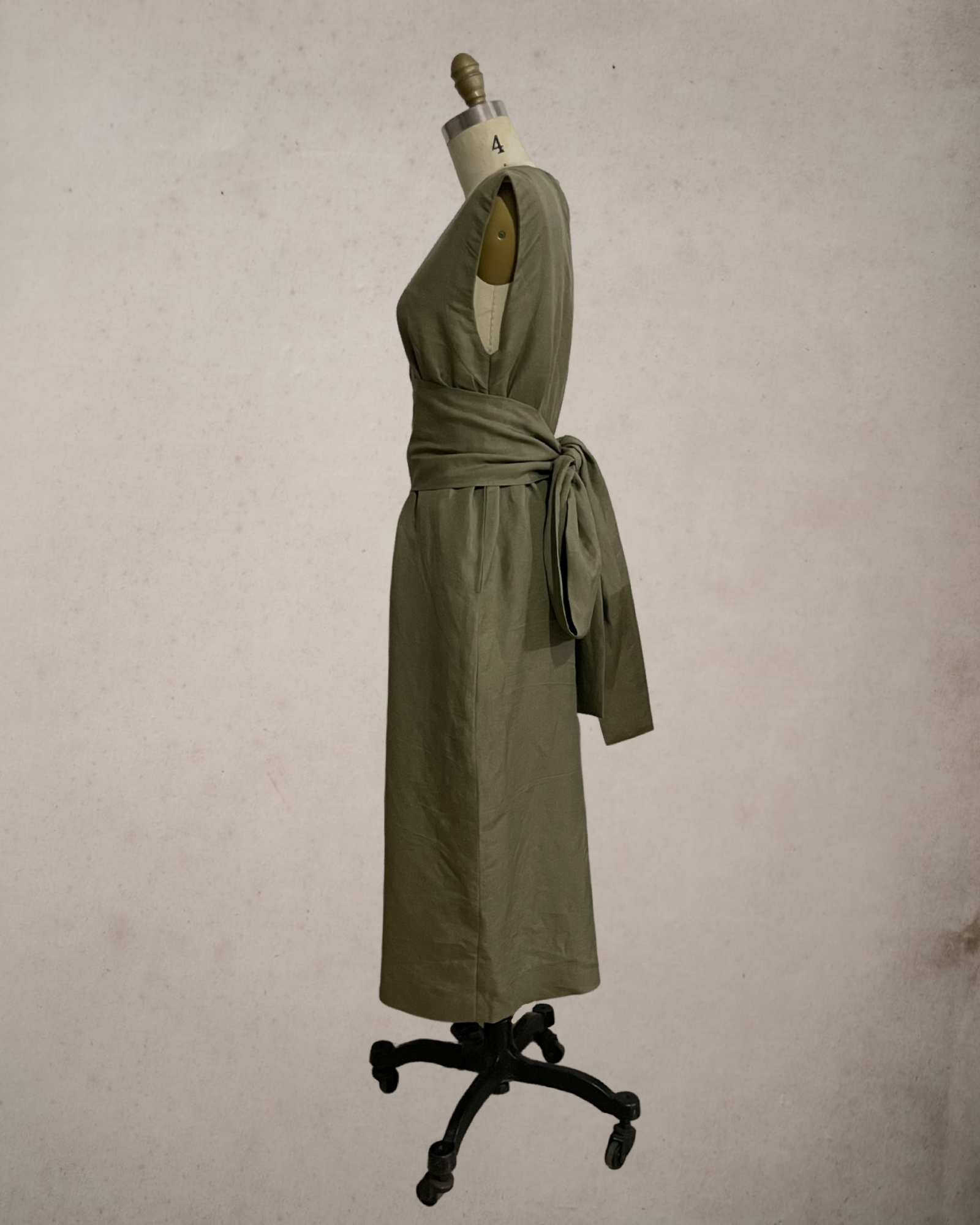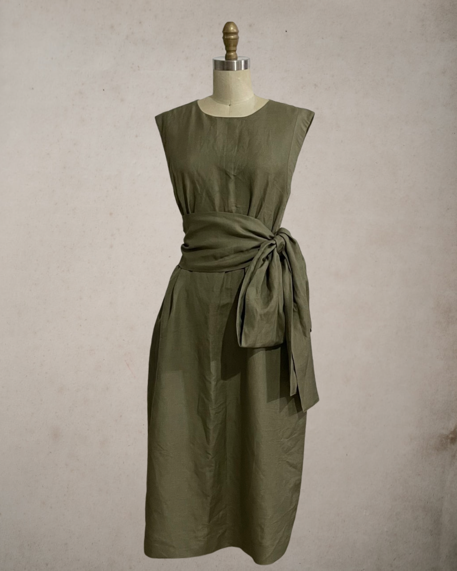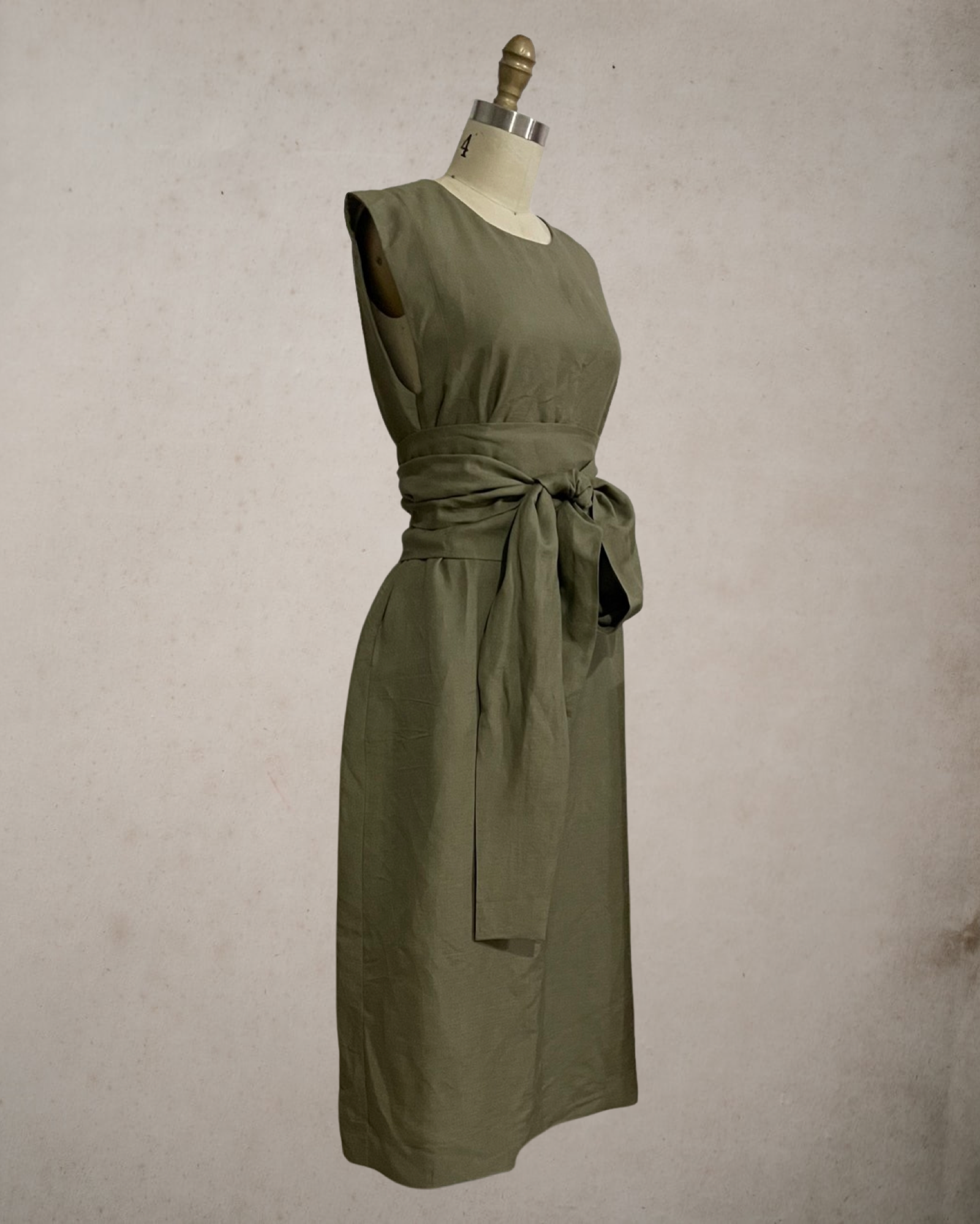 Wide Wrap Belt Dress — Fatigue Green Linen