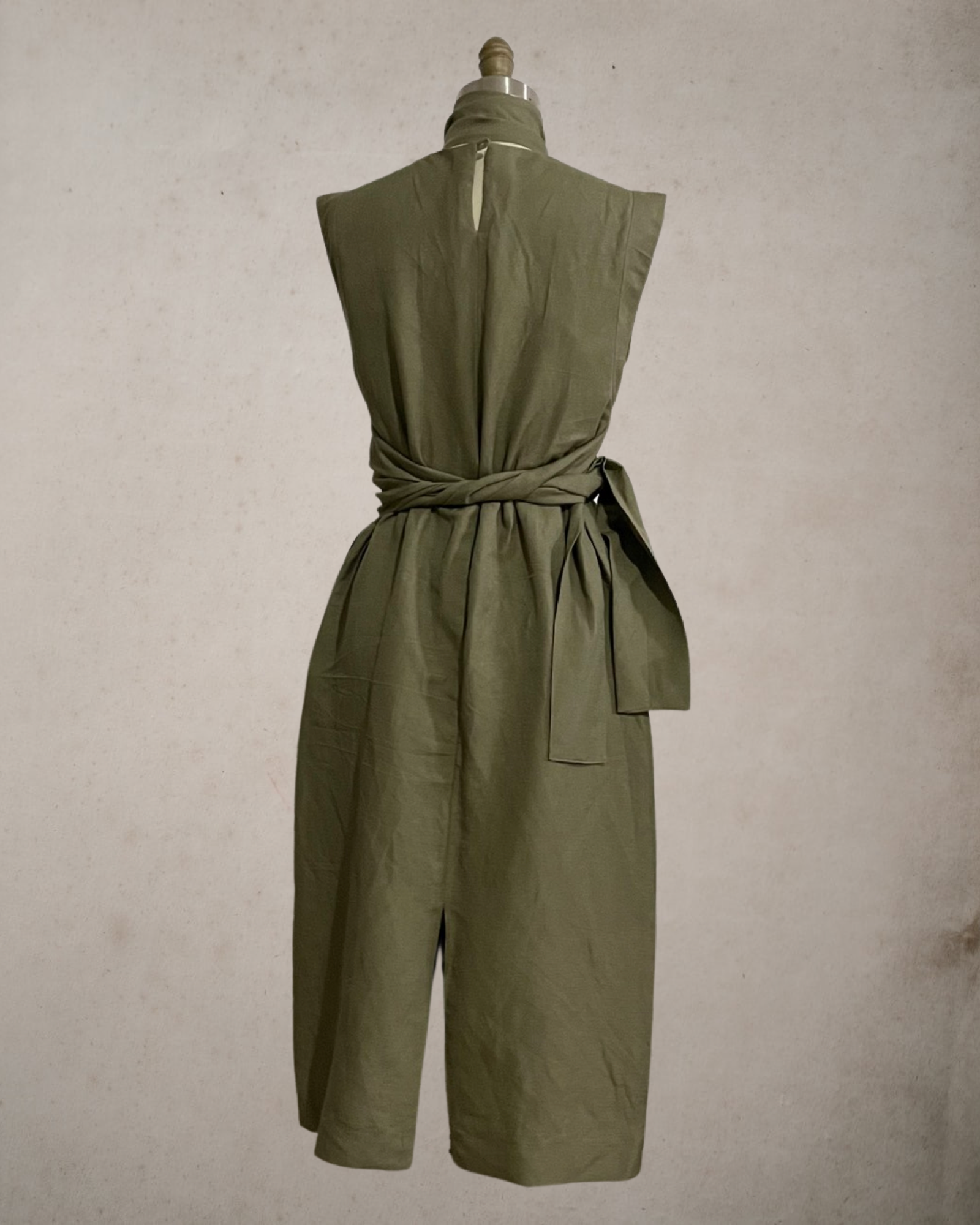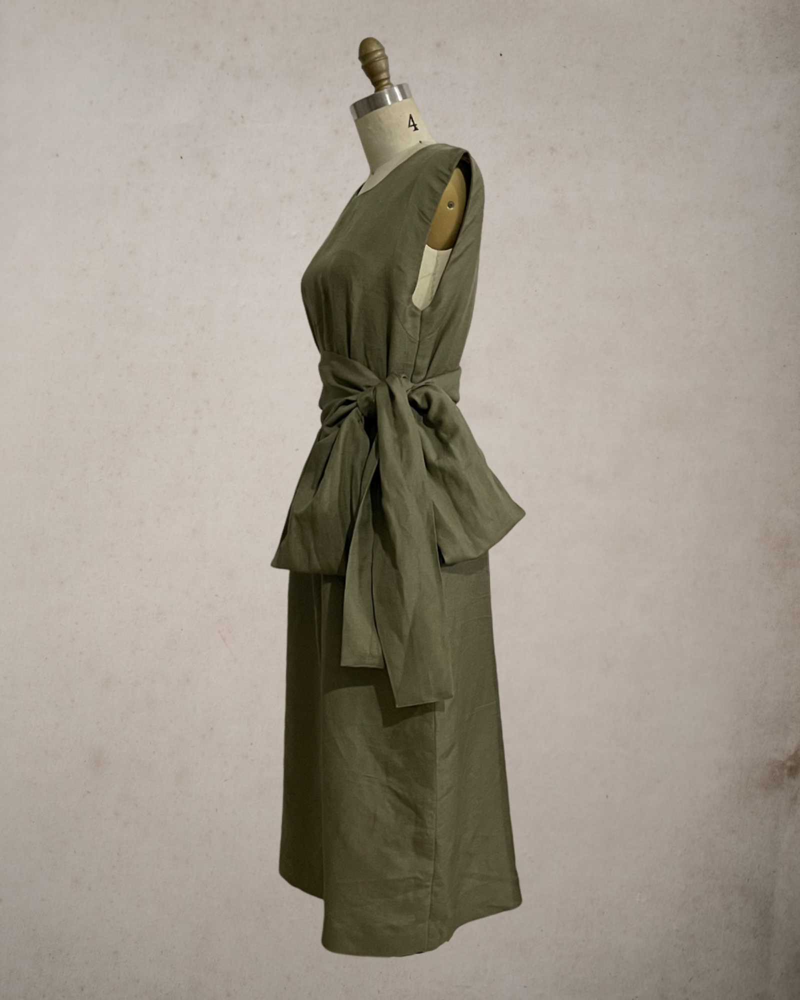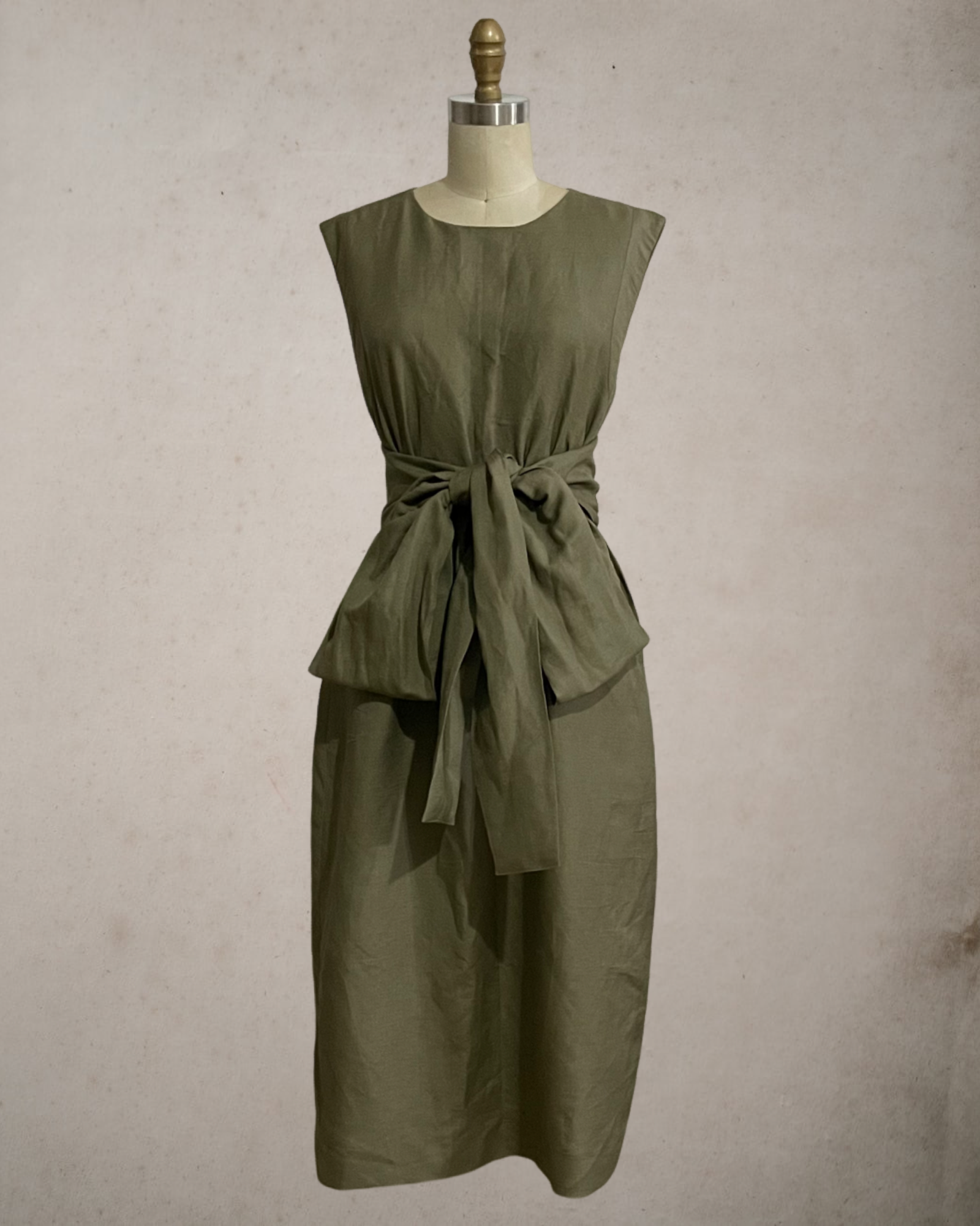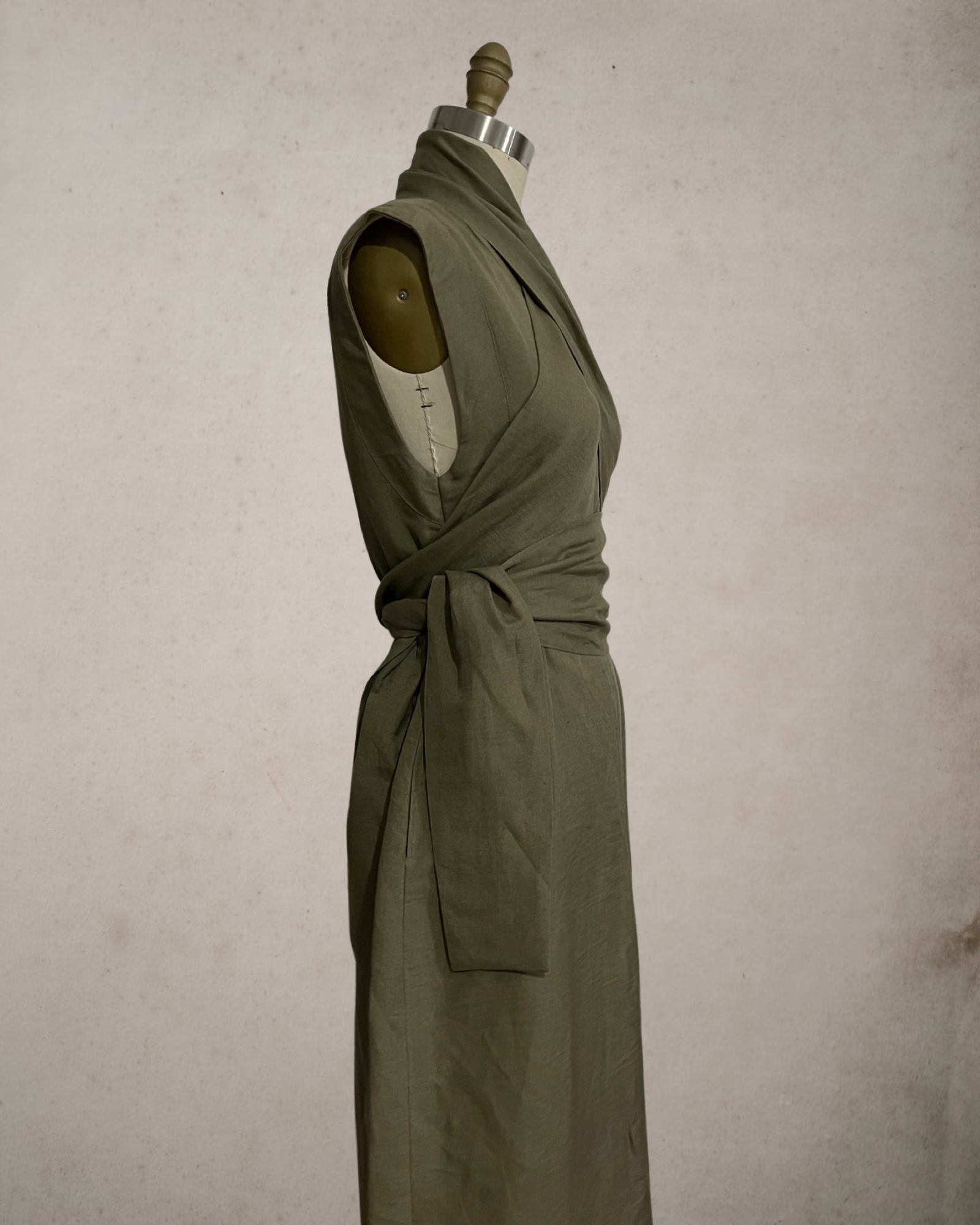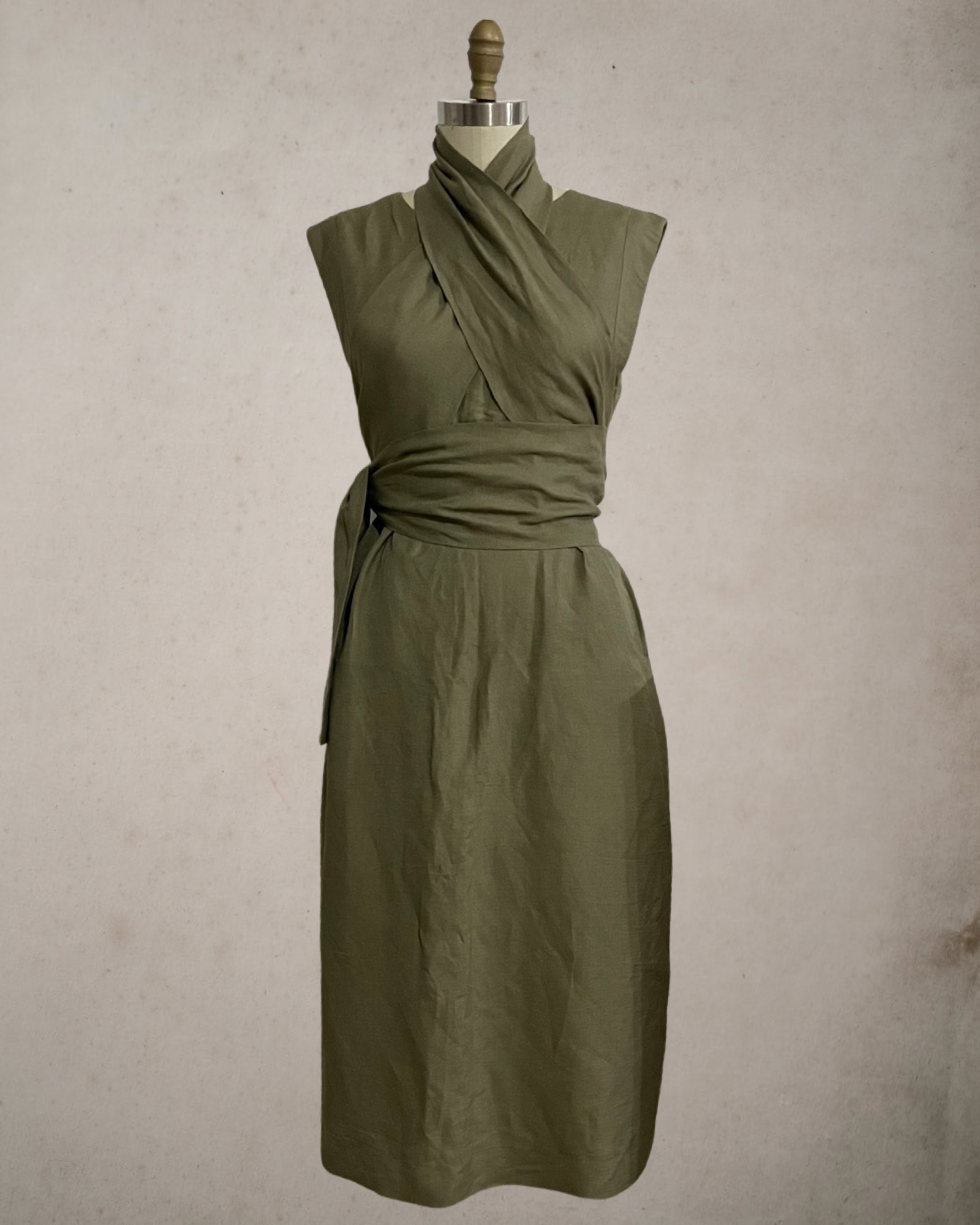 Wide Wrap Belt Dress — Fatigue Green Linen